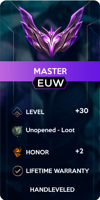 Experience the pinnacle of competitive gaming with our meticulously hand-leveled EUW Master accounts. No bots, no third-party programs—just pure, authentic gameplay. Perfect for streamers and players seeking a new main account!